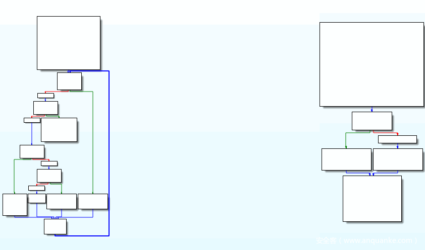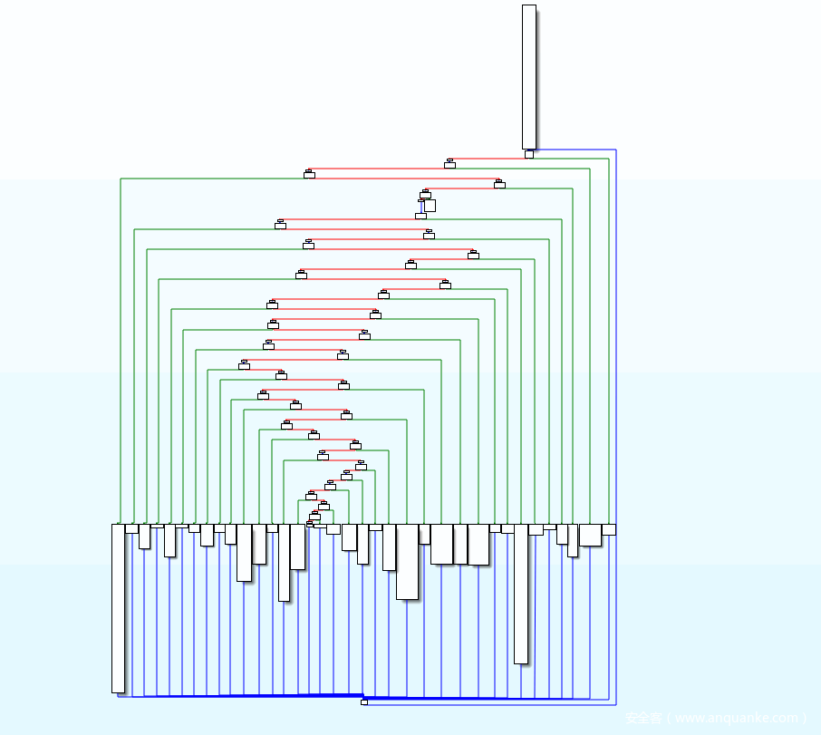 计算每个块支配块数量,除以图中所有块,取最高分——若不低于0.9,证明该函数经过控制流平坦化。如下图:
