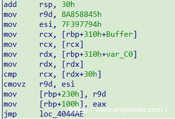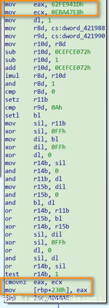 通常CMOV指令位于倒数第三条语句,但笔者在测试时发现部分块CMOV指令位于倒数第四条语句: