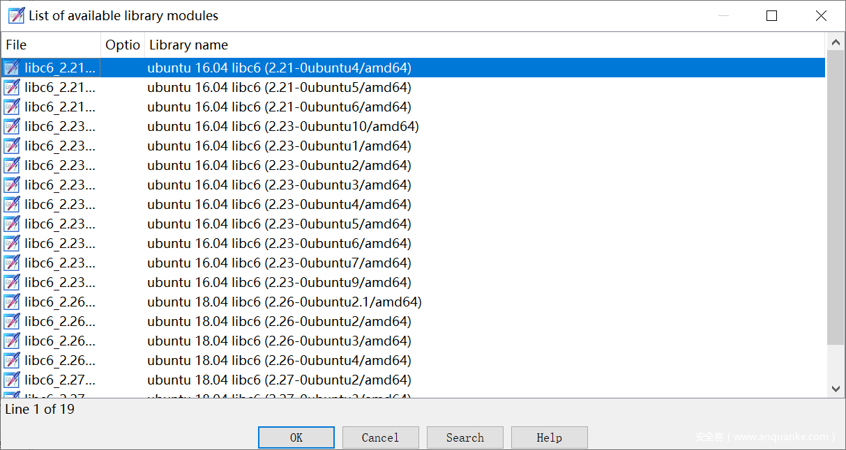我这里测试多次后选择的是 Ubuntu 16.04 libc6(2.23-0ubuntu6/amd64),如果你不知道静态编译使用的是哪个版本的库文件,可以尝试多导入几个版本的文件进行测试。