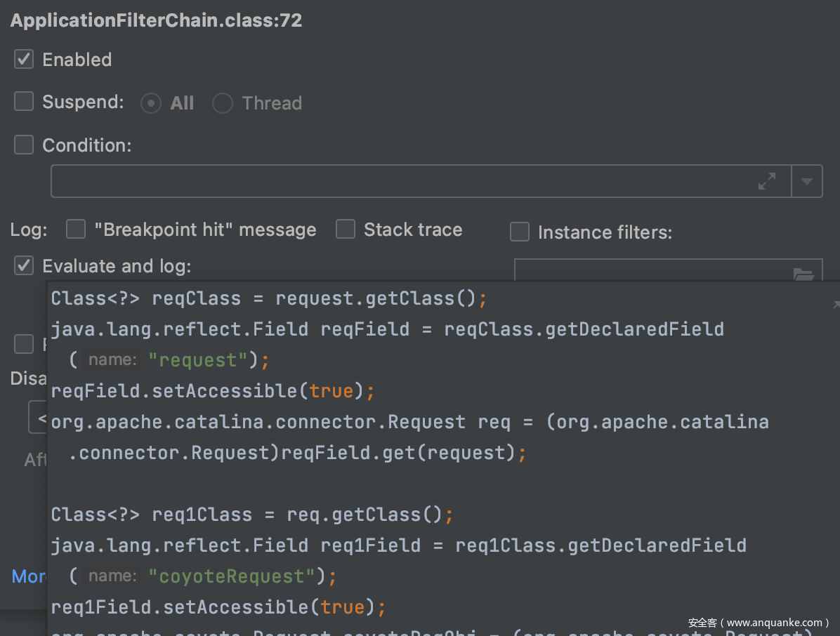 最近才发现IDEA断点有个Evaluate and log代码区,我们可以根据反射调用获取tomcat或者jetty web服务接受或发送的请求响应包的全部内容。首先我们要自己搭建个tomcat web服务及调试环境,可参考链接。
