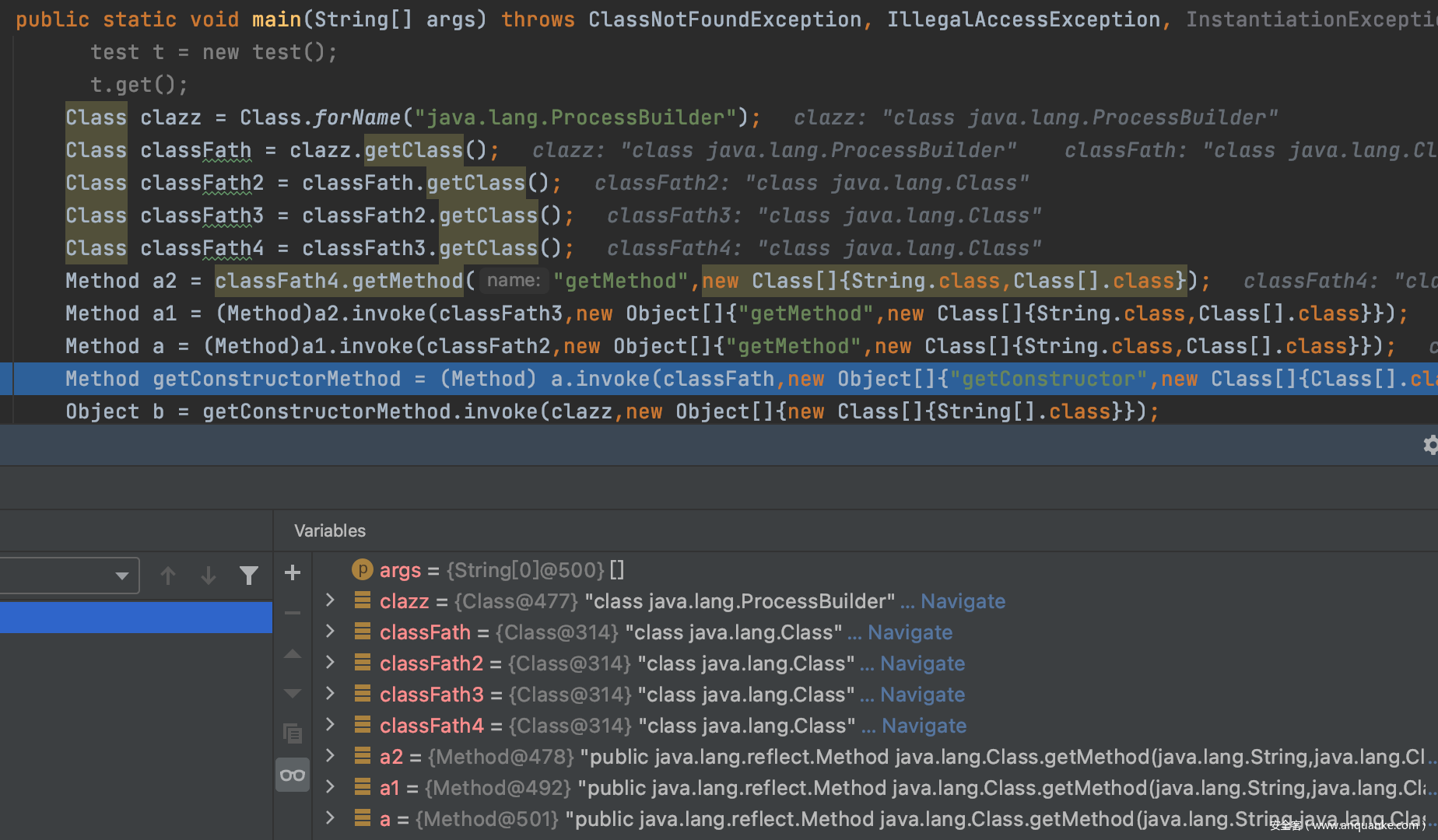 关于反射可以无限套娃的,我把之前的processBuilder命令执行反射调用改了改,变得更加复杂,当然搞懂之后反射也变得更好理解。