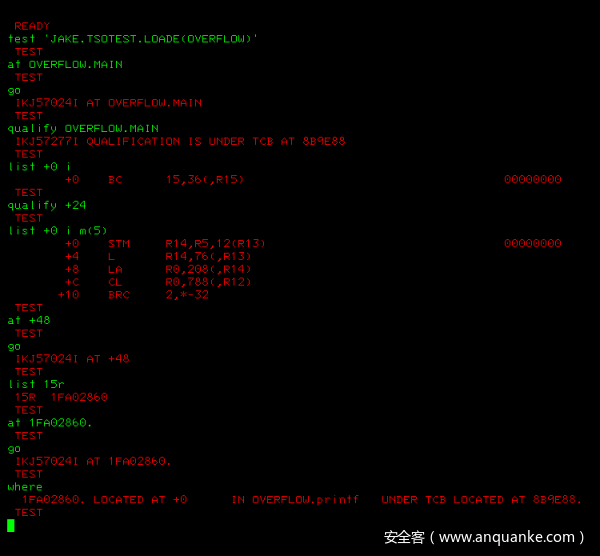 首先,zOS系统上可用的工具并不适合逆向工程,因为IBM创建它们的初衷,是为了调试应用程序。在本文中,我选择使用的应用程序是TSO TEST,因为它是免费的(前提是您能访问zOS,我是通过zPDT的许可副本来访问它的),并且会默认安装在每台IBM大型机上(甚至是TK4上面,它是20世纪80年代的开源zOS系统的前身)。