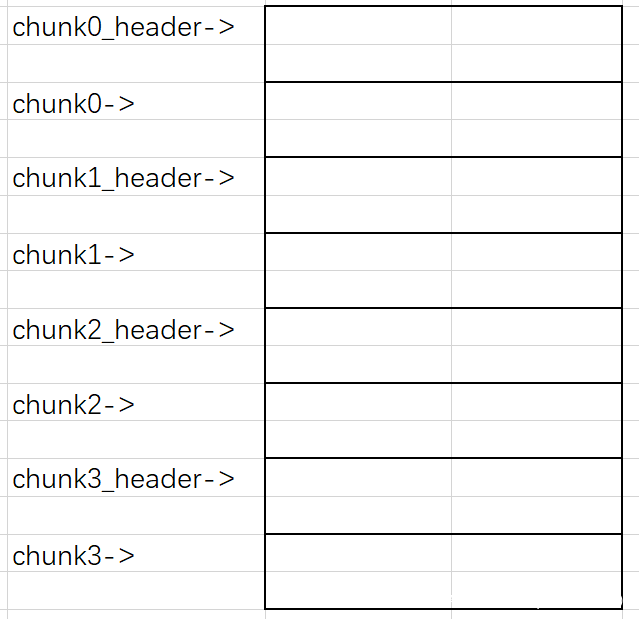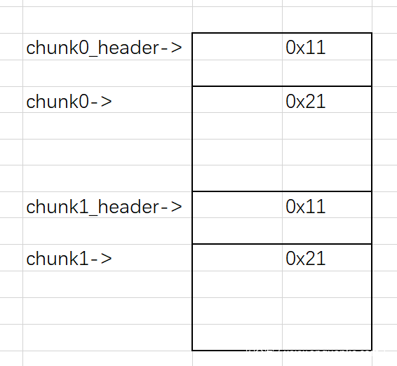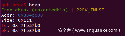 我们可以先申请这样几块chunk:,然后我们就要想办法伪造一块free掉的chunk,使其fd指针指向unsortbin的bins头,然后进行输出泄露出地址。
