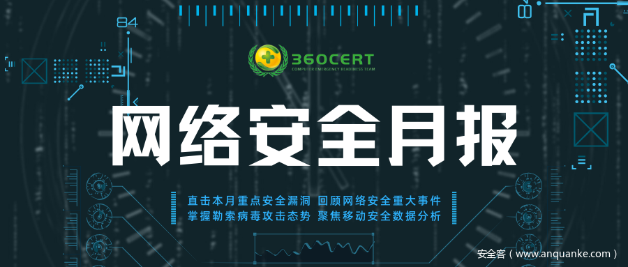 当前,随着数字化浪潮的不断加快,网络空间博弈上升到全新高度。潜在的漏洞风险持续存在,全球各类高级威胁层出不穷。洞悉国内外网络安全形势,了解网络安全重要漏洞是建设好自身安全能力的重要基石。在此背景下,360CERT推出《网络安全月报》,总结本月国内外安全漏洞、网络安全重大事件、恶意软件攻击态势、移动安全情况等。每个章节中都具备总结性文字、重点罗列、图表分析等展现形式,方便读者了解本月网络安全态势。