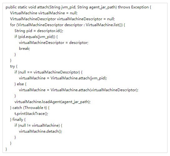 2、被注入的agent(符合jvm规范),JVM会回调agentmain方法并注入Instrumentation。Instrumentation中有一个api能够加载出运行时JVM中所有的class