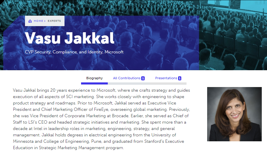 微软安全,合规和身份CVP副总裁Vasu Jakkal将讨论保护所有人隐私的共同责任,以及领导,建立信任和建立持久性的关键方法通过全面的隐私和安全措施实现业务价值。
