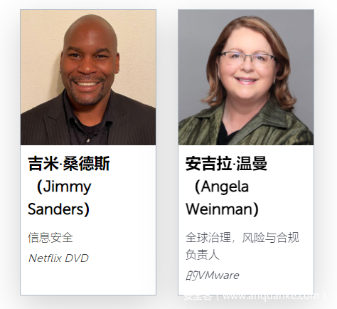 ?精彩内容四:作为VMware全球治理风险与合规部负责人,Jimmy Sandersu与Netflix DVD信息安全部负责人Angela Weinman分享了《Telling Hard Truths to Impact Change in Cybersecurity》主题内容。Jimmy Sandersu表示,“共同的责任,增加的多样性以及采用创新的科学有效的技术将使我们在行业内取得惊人的进步和变化。”