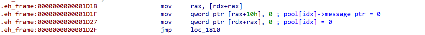 不过在在这部分的空间,远不足以让我们来把message_ptr的地址置0,我们需要有另一块地址来写入我们的汇编代码,然后让代码在执行过程中jmp过去执行即可。
