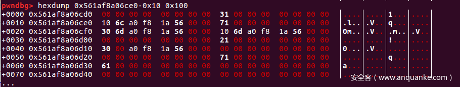 利用fastbins链上的残余指针即可获得堆地址,不过需要注意一般操作会造成残余指针会覆盖,需要结合UAF的漏洞来泄露,具体操作可以看exp。