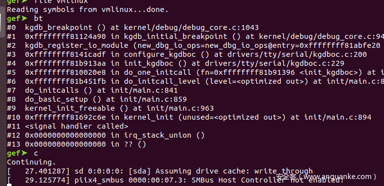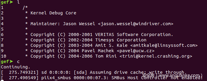 调试centos内核的时候,使用dir命令加载源码,在使用l命令查看是否成功,如下图所示。