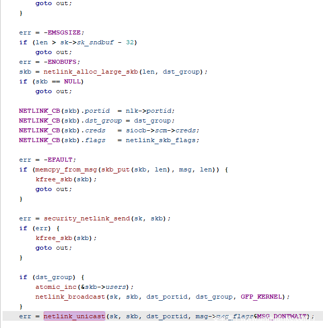 // ... cut (copy userland data to kernel + skb allocation) ...