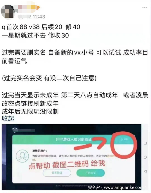 有利益的地方,就会催生大量的黑灰产人士。账号买卖只是冰山一角,更有黑灰产为未成年网游玩家提供“过脸”服务。