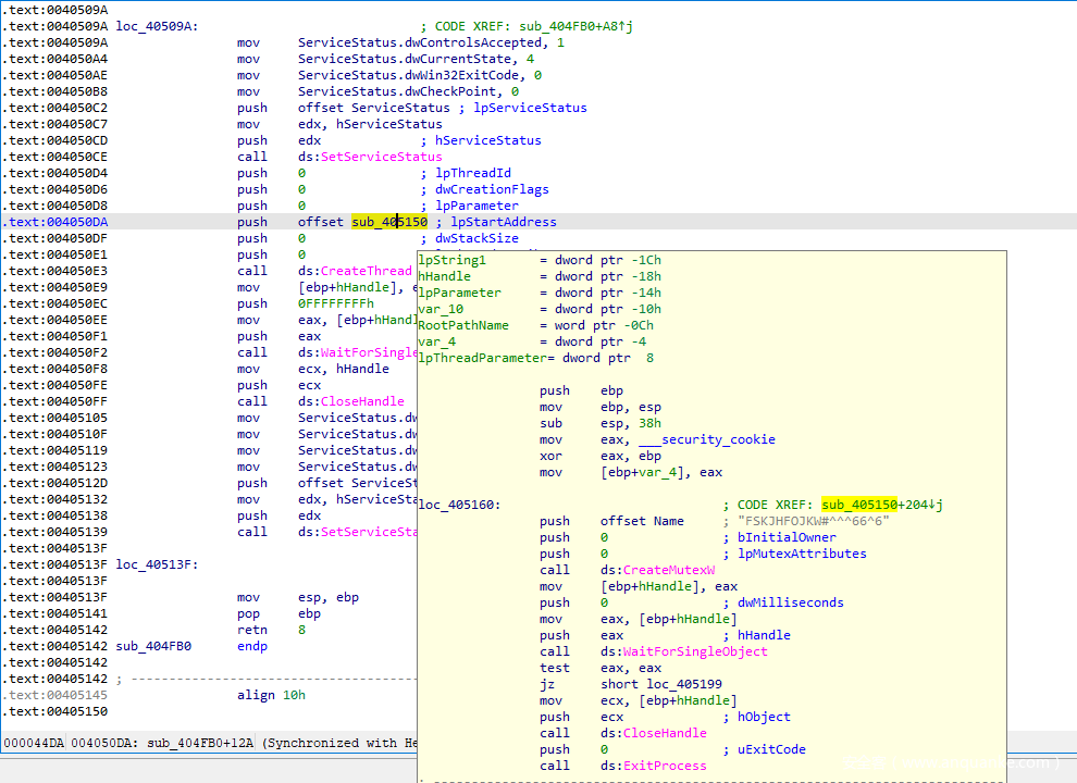 互斥体取名相对来说比较”困难”,为了避免不同版本的恶意软件感染同一个主机并在主机上同时运行,攻击者通常需要选用多个版本同时适用的互斥体名。