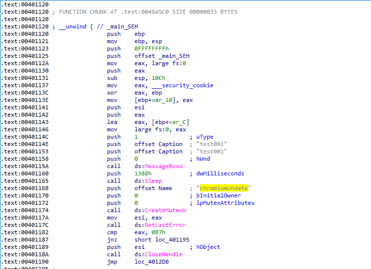 这里的互斥体名很明显是仿冒了Chromium更新程序名,此外,攻击者还仿冒了Chromium的版本信息