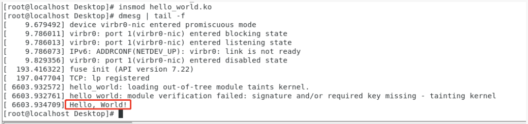 内核系统调用Hook的代码需要通过内核模块的方式加载进入内核中,首先需要对内核模块有一个简单的了解。下面是一个 LKM 的 hello world