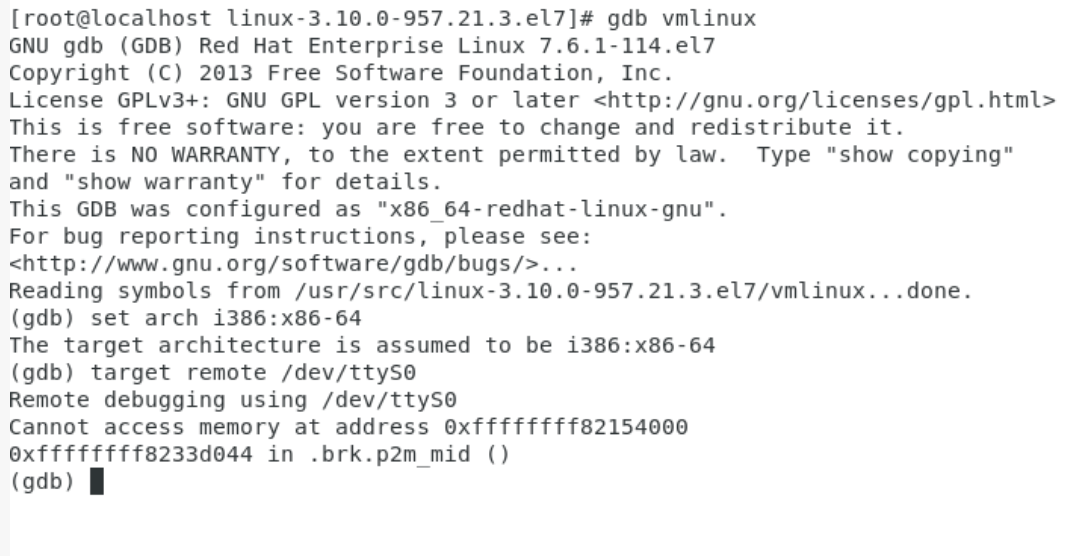 此时通过client端的gdb进行连接后即可调试内核了