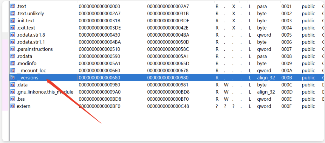 google 查询了一圈之后,得到的回答基本都是需要LKM与kernel版本完全匹配,否则kernel会拒绝LKM的加载,难道就已经没有办法了吗?不甘心的我打开了IDA,偶然间看到了 `__version` 区段