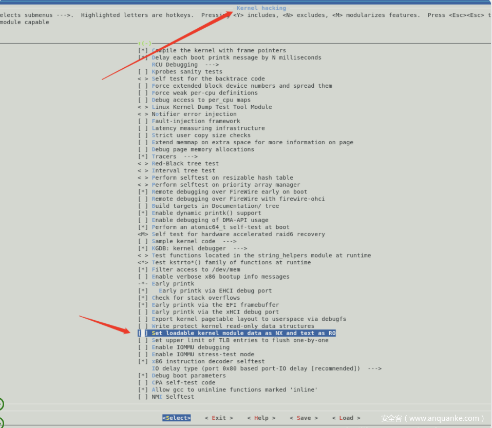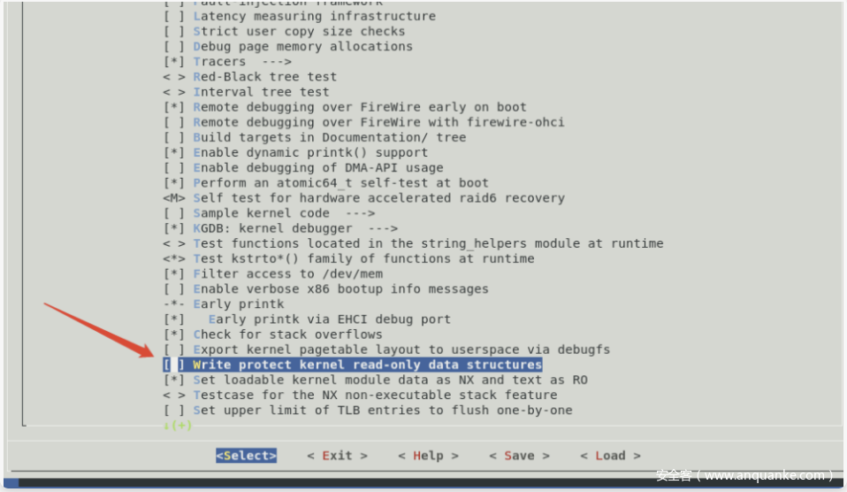 为方便后续的调试,需要勾掉下面这个选项,在开启该选项的情况下,会将内核一些区域设置为只读,导致kgdb设置的断点失效。