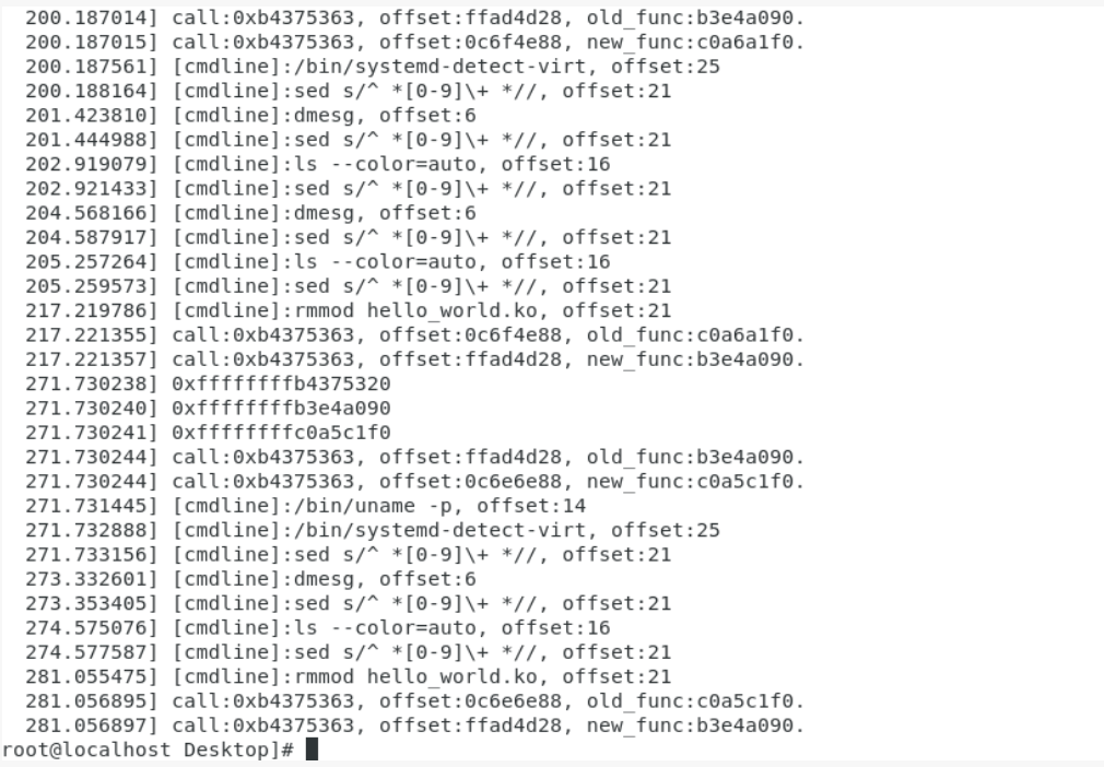 在完成hook后不要忘记将call sys_execve恢复到原来的状态,否则在 LKM 卸载后,call sys_execve 仍然会跳转到原本是自实现execve函数的地址上去导致crash。