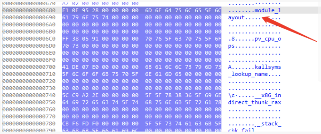 想必很多大师傅已经懂了我要干什么了,我从目标上扒了一个ko文件下来,找到了module_layout 的四字节签名后直接在 IDA 中把我的ko文件中module_layout 的签名patch成和目标上一样的。