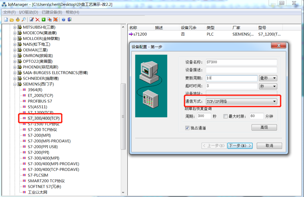 本次使用的是力控ForceControl V7.1画面组态软件。ForceControl与控制器之间的通信采用TCP通信方式实现的。