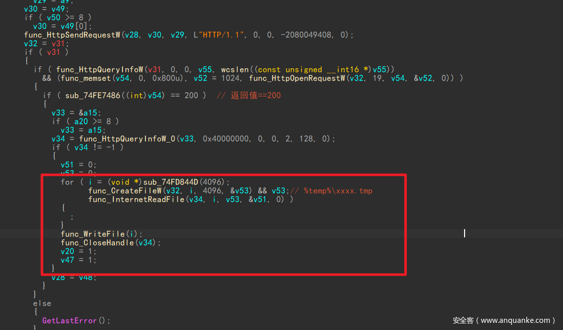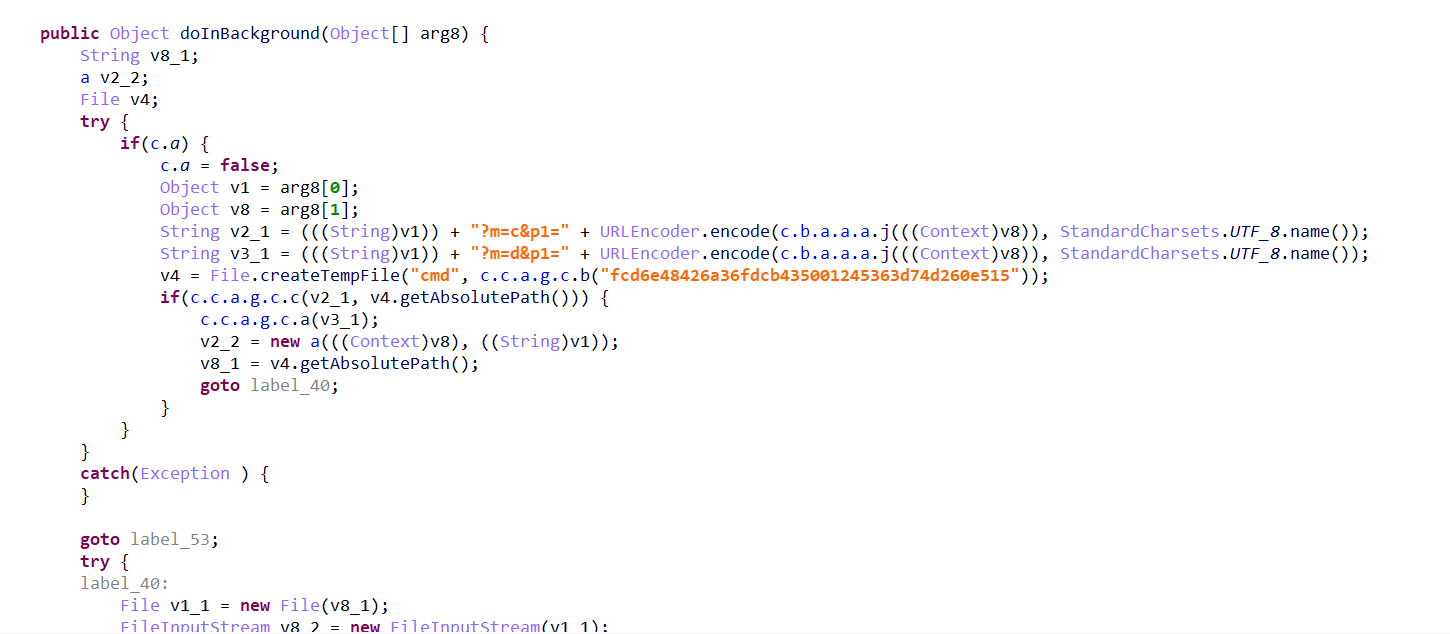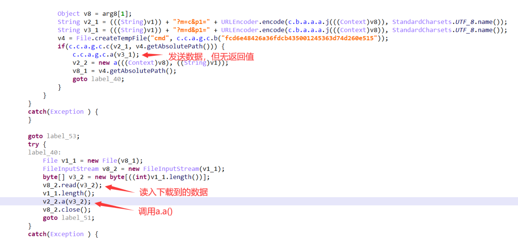 c.c.a.e.c() 先创建了一个临时文件 cmd_xxxxx.dat(以下文件不特殊说明均为临时文件,注意:[xxxxx为五位字符数字的随机文件名]) ,然后下载数据写入文件