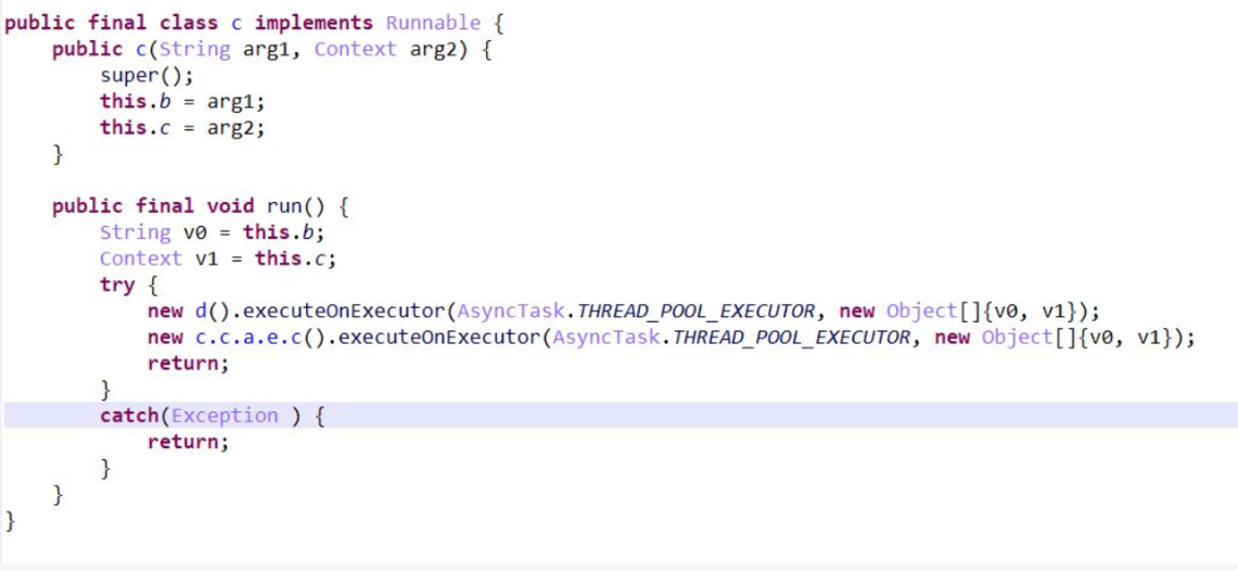 在 c.c.a.c 中,并行执行了两个方法 d() 和 c.c.a.e.c(),分别查看逻辑