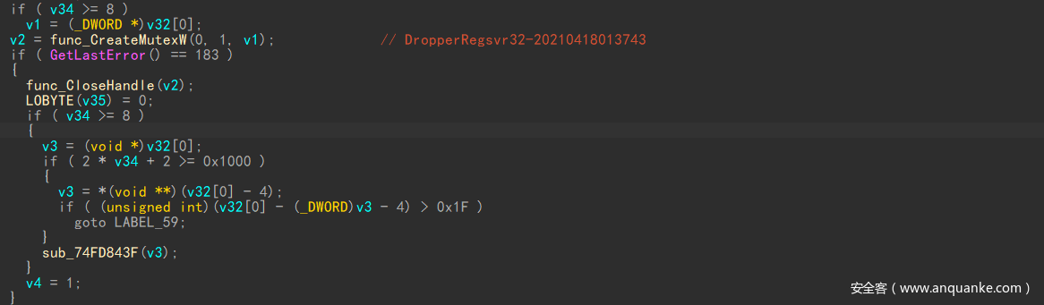 创造名为DropperRegsvr32-20210418013743的互斥体并且防止其多开