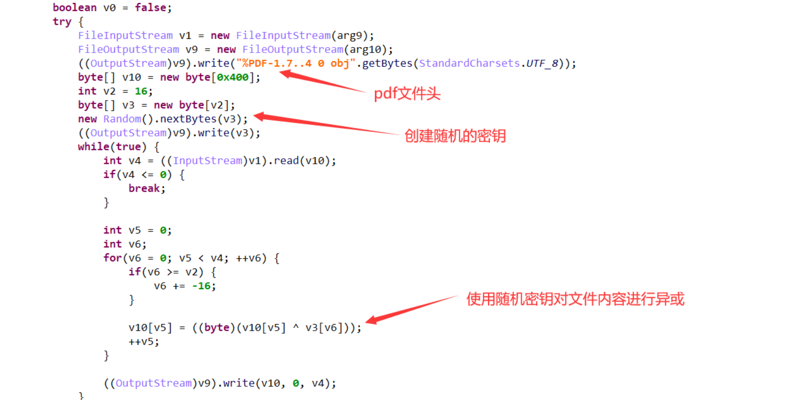 list.xls 经过压缩,写入 zip.dat ,并在 c.b.a.a.a.u() 中伪装了 pdf 文件头并加密内容,逃避沙箱对流量的检测