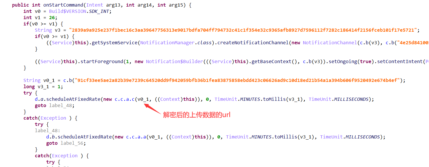 MainService 中,字符串经过了加密,对关键字符串解密后,可得到上传数据的 url