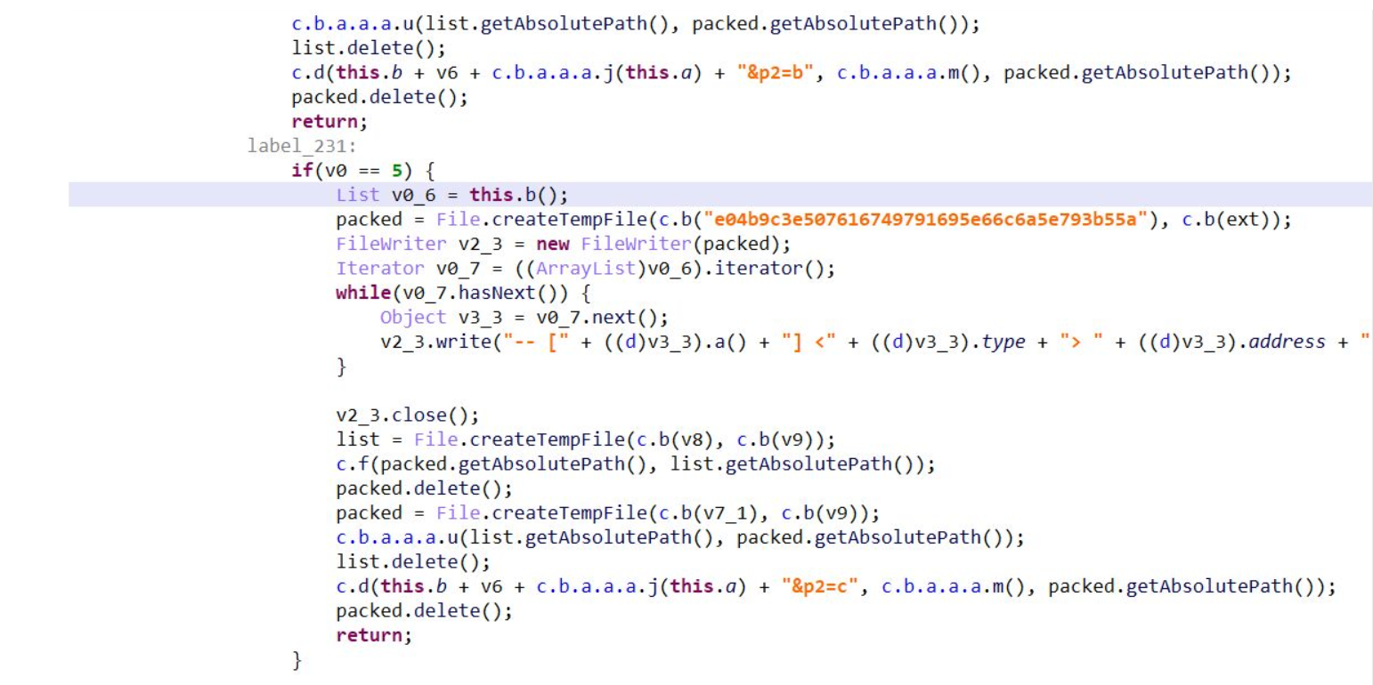 二者的解密代码具体一定的相似性也成为二者被归因到一类恶意软件的一项重要的指标。不过由于dll使用了大量的代码流平坦化,导致解密函数的流程被严重的混淆,故此不能作为很强的归因形式.不过根据APK所提供的解密算法可以还原dll文件中的相关密文。