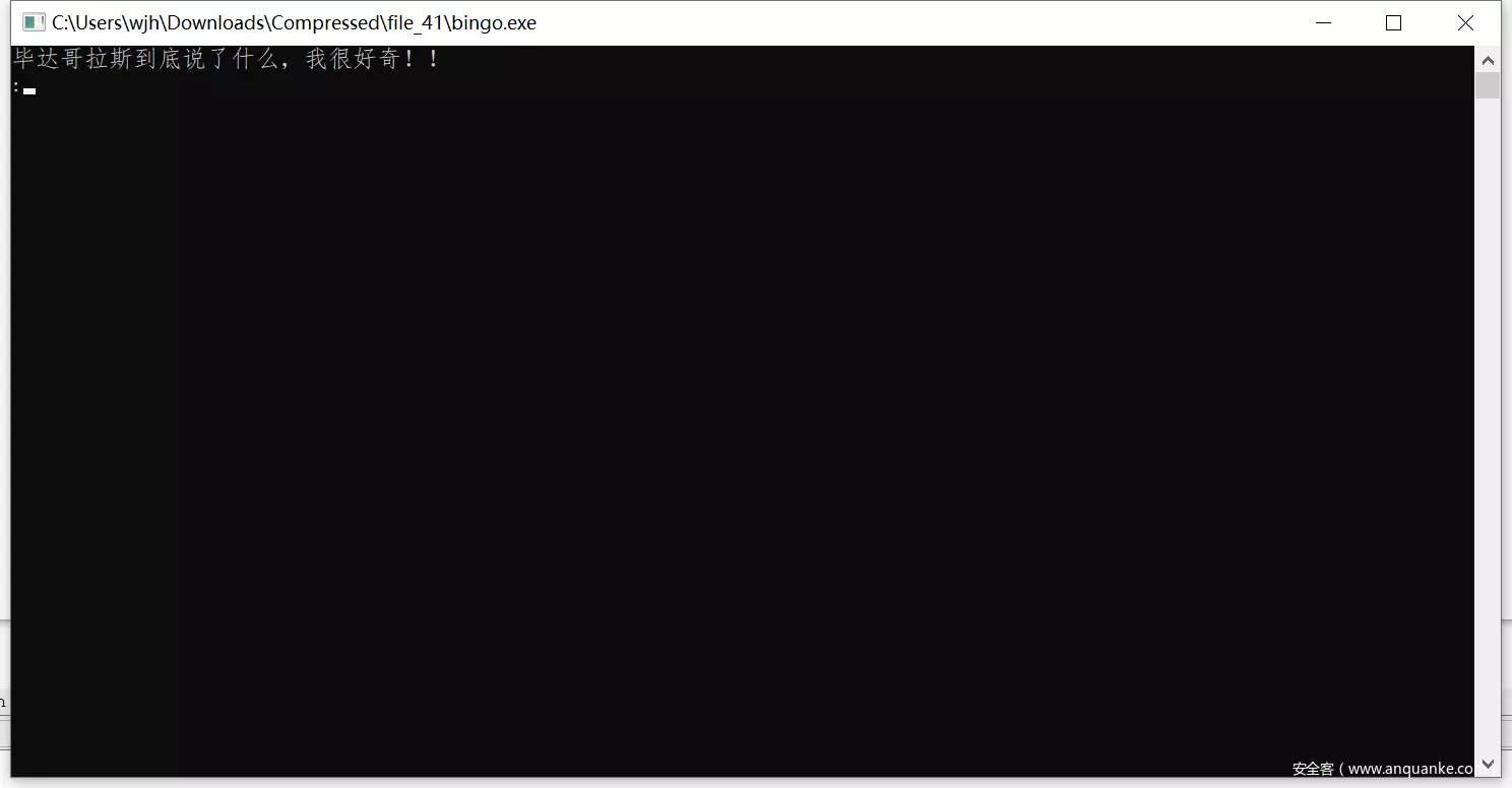 数据补上后直接打开运行,发现可以显示黑框,但是运行后直接退出,于是打开 IDA 分析一下