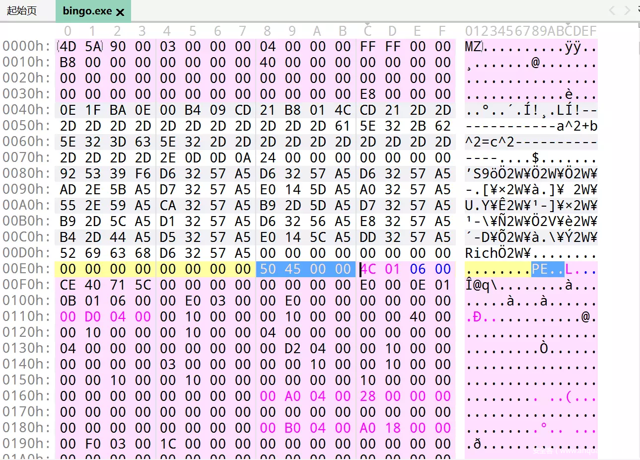 这不就是熟悉的 MZ 文件头吗,用 010 Editor 提取出这一段内容。