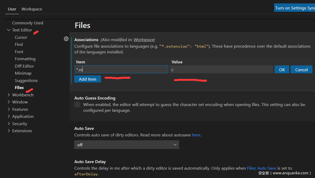这个开启动态调试方便一点,首先配置vscode解析.re后缀的为c