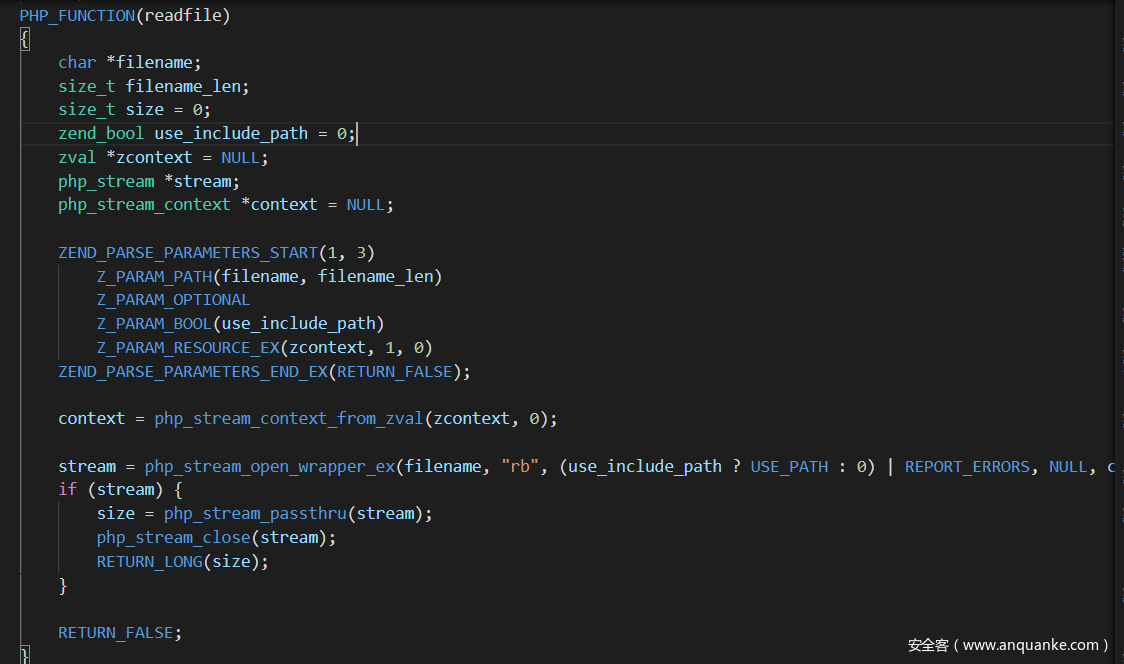 拆开来理解一下,第一层是wrapper && wrapper->is_url就是判断这个数据流是否有url模式,第二层(options & STREAM_DISABLE_URL_PROTECTION) == 0通过运算判断数据流是否是url,第三层!PG(allow_url_fopen)判断php的配置里面是否启用了allow_url_fopen,((options & STREAM_OPEN_FOR_INCLUDE) ||PG(in_user_include))大概是判断数据流是不是用于include,!PG(allow_url_include)判断php是否配置了allow_url_include,所以可以发现这里对include和readfile这些文件操作函数处理流程是不一样的,写个测试代码: