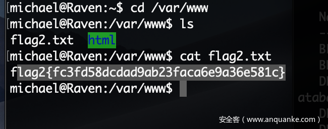 下一步就是拿flag了,flag2在 /var/www/ 目录下,如图: