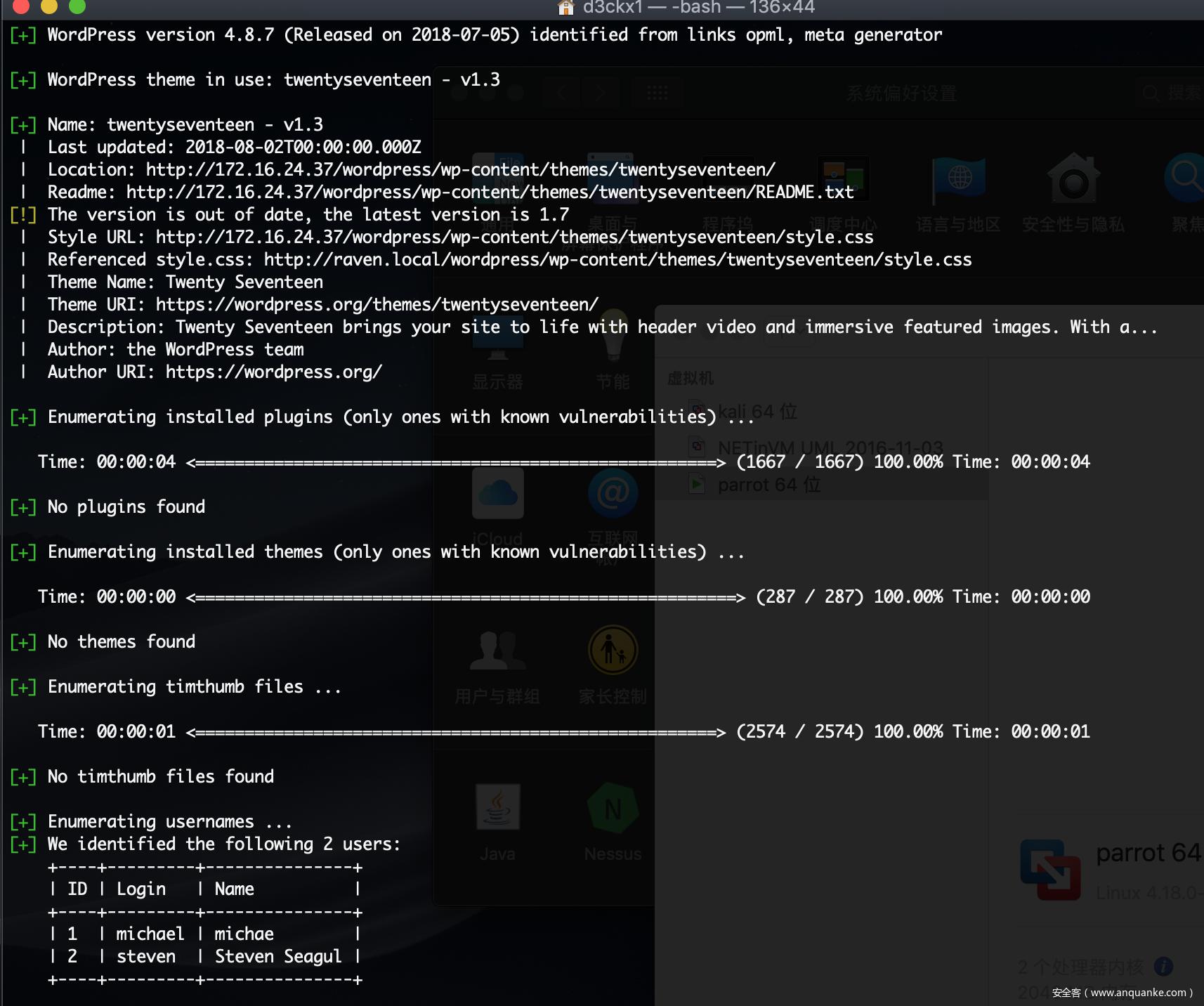 未发现可利用漏洞,但是出来2个账户“michael”、“steven”