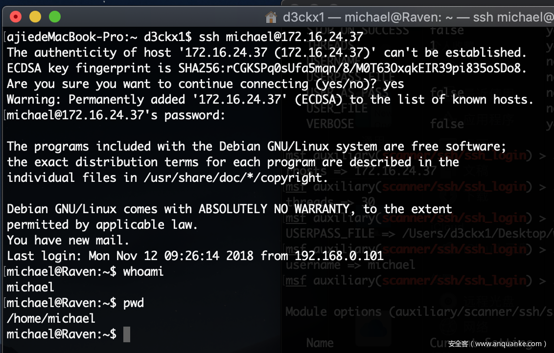下面我们加载这2个账户来破解其ssh密码,各位也可以使用msf来完成