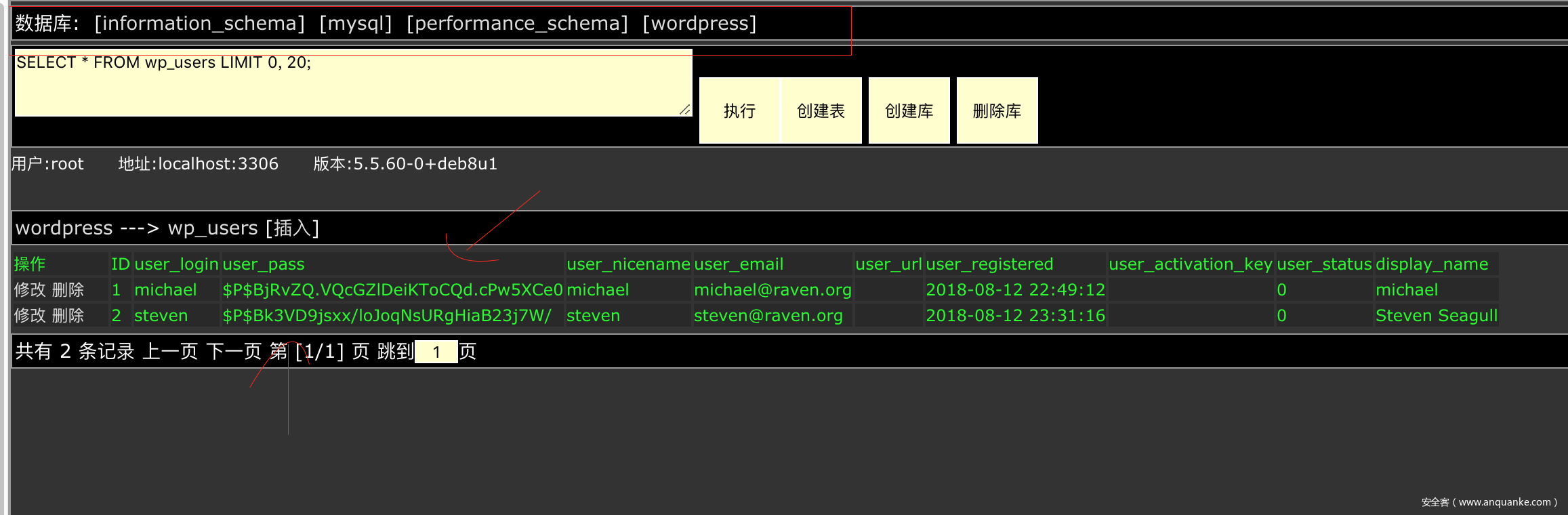 mysql账户密码为:“root”、“R@v3nSecurity”