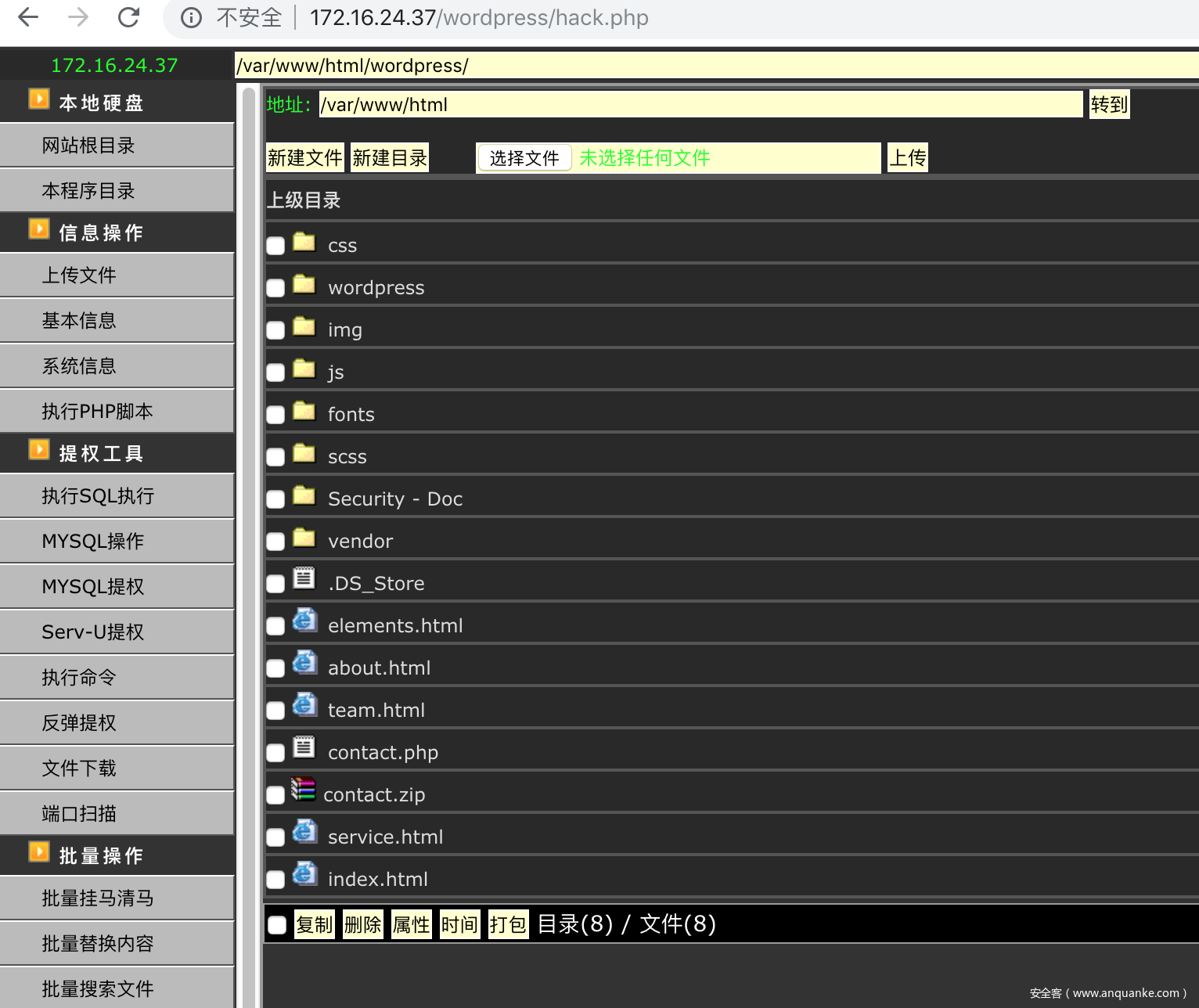 下面为了演示方便,小弟上了一个php大马在/wordpress目录下,