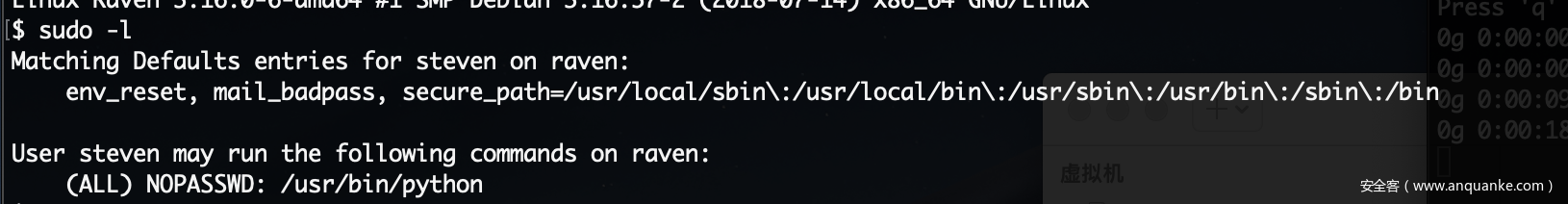 可以看到python,可以直接绕过root,下面只需要输入命令