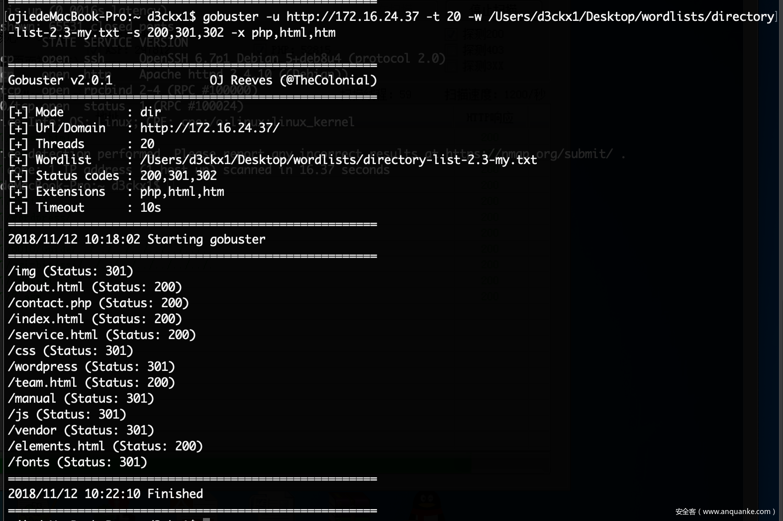 下一步进行目录猜解,本次使用gobuster 工具完成