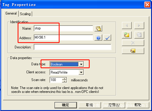 2)在KEPServer中创建3个tag与上面的s71200 PLC的3个变量对应,如下图。Omron PLC的创建方法类似。