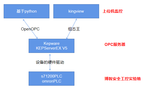 最近在研究这样一个需求,通过OPC服务器的方式把多个PLC的数据集成到一个监控画面,OPC服务器通过硬件驱动获取设备的数据,上位监控再获取OPC服务器的数据,数据获取的方式可以是第三方成熟的OPCClient,也可以基于python开发来读/写数据,本文介绍了一种基于python开发的思路,当然这里要借助OpenOPC这样的python插件。