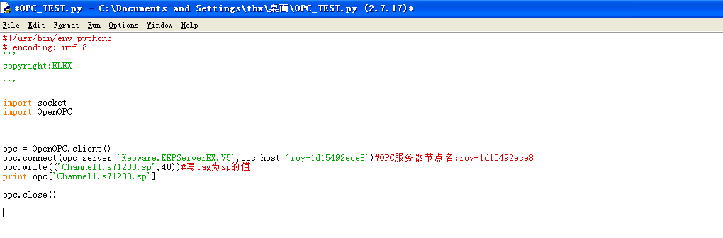 2)在OPC客户端编写读/写tag name为sp的值脚本如下: