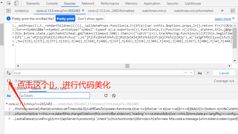 这个时候,我们在Find窗口,输入 acToken: 看到有4个匹配的结果